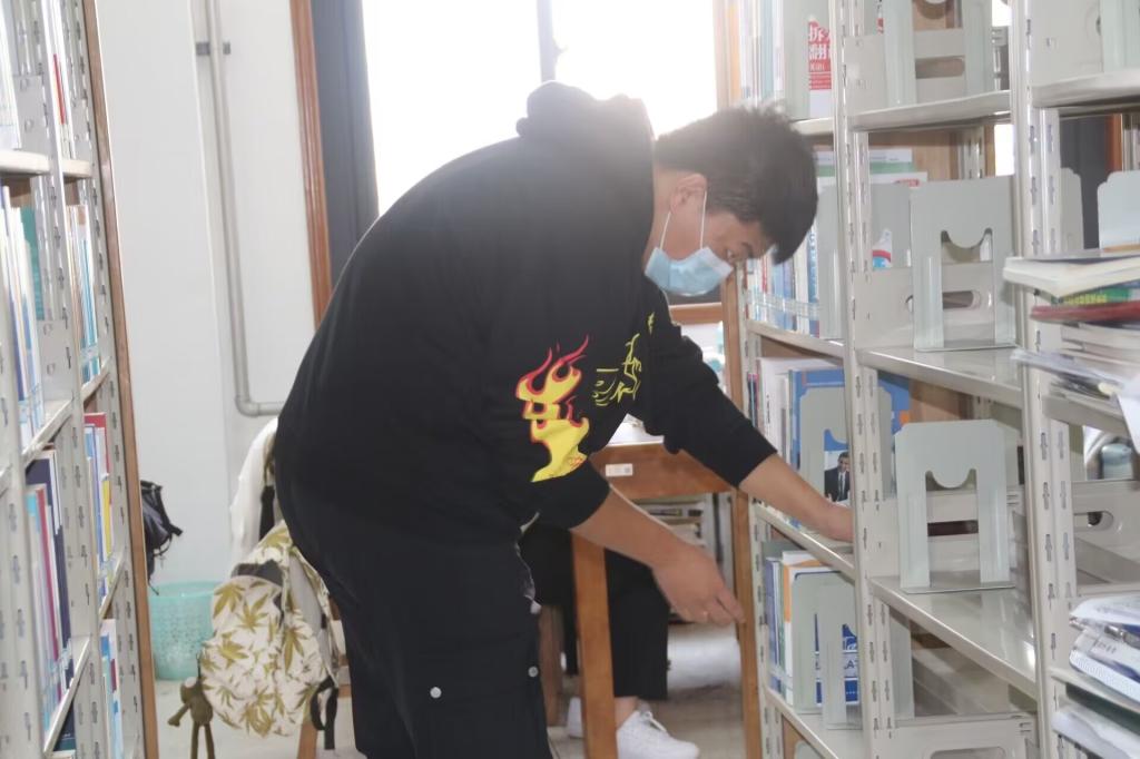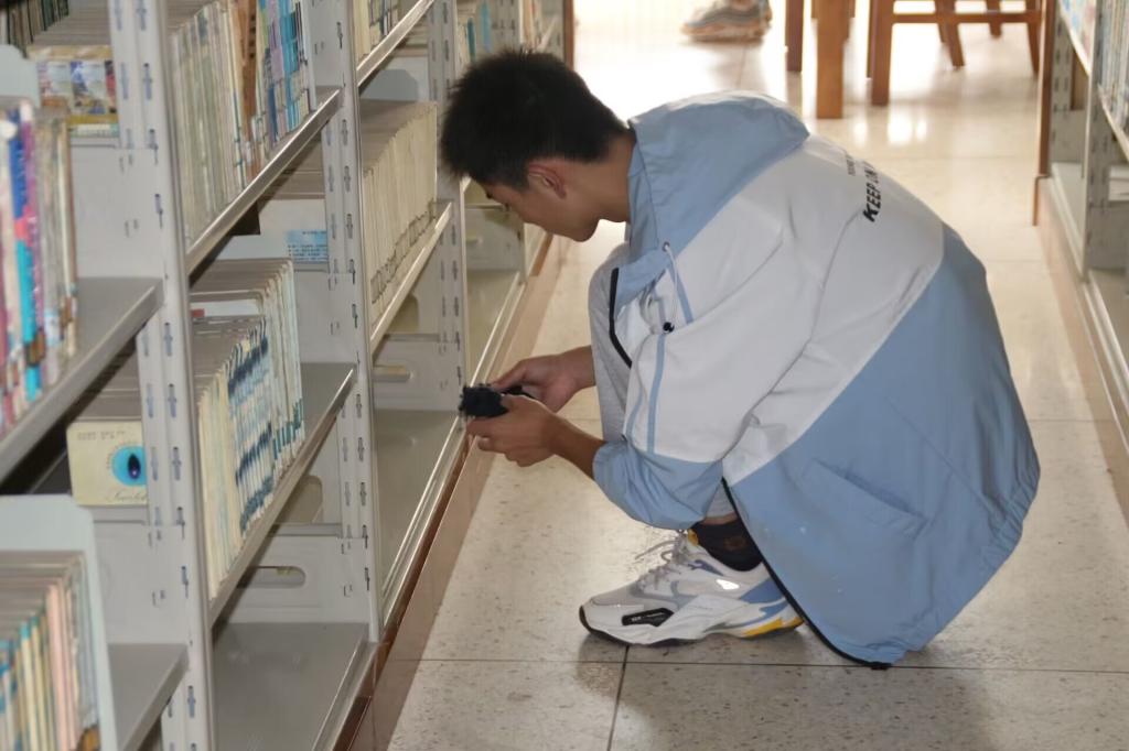 志愿者分为2组,有序安静地进入图书馆四层开展清扫活动。志愿者认真细致地擦拭书架上的灰尘、整理杂乱的书籍。经过一个多小时的努力,四层环境焕然一新,得到了师生的认可。