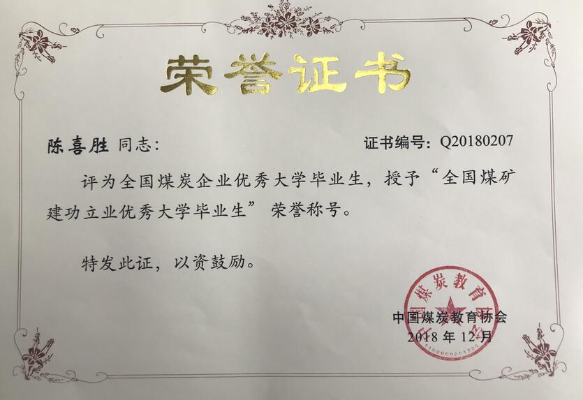 近日,公司孙利海、陈喜胜两名毕业被中国煤炭教育协会评为“全国”煤矿建功立业优秀大学毕业生称号,为全院学子起到了良好表率,今后,公司将进一步加强员工联系,挖掘员工资源,选树先进典型,传承地环精神,促进员工进步。