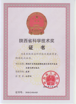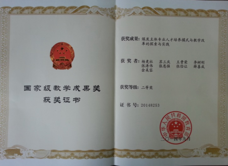 获省部级科学技术进步奖一等奖、二等奖各2项;陕西省煤炭工业科技成果一等奖、二等奖各1项;陕西高等公司科学技术奖二等奖、三等奖各2项;全国煤炭教育优秀研究成果一等奖2项;陕西省教学成果奖一等奖2项、二等奖1项。