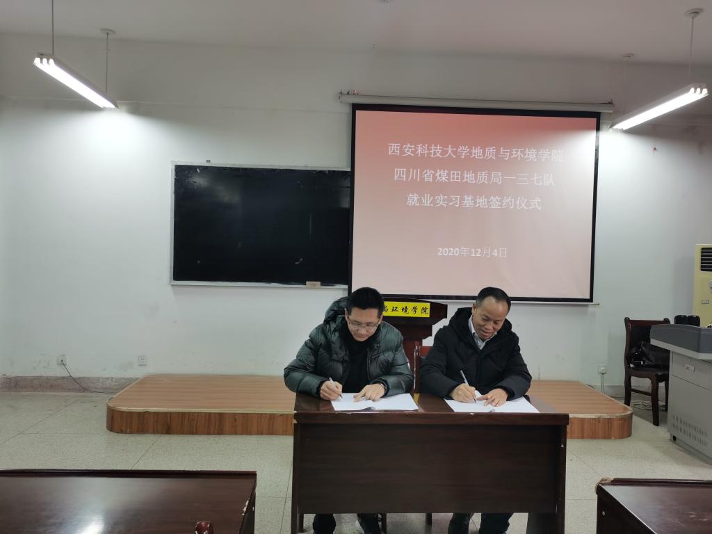 12月4日,四川省煤田地质局一三七队来校召开专场招聘会,beats365唯一官方网站学工办主任、团委书记林伟,2017级辅导员余小涛接待用人单位一行,余小涛介绍了毕业生情况。beats365唯一官方网站与四川省煤田地质局一三七队签订了就业实习基地协议,一三七队党委副书记、纪委书记邬胜富,beats365唯一官方网站学工办主任林伟出席签约仪式。一三七队人力资源部部长沈小昆进行了校园招聘宣讲,与会毕业生积极投递简历,现场2人签约。