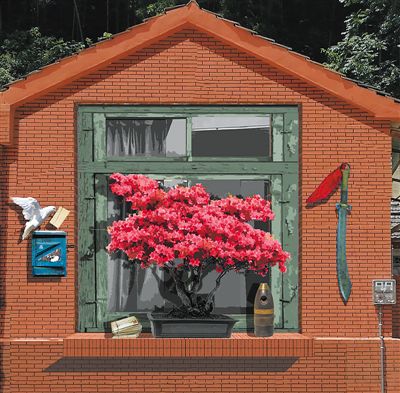 安徽省六安市霍山县诸佛庵镇丙烯壁画《窗前的杜鹃花》,中国美术公司绘画艺术公司师生集体创作。 |