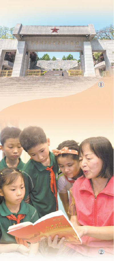 图①:位于河南省信阳市新县的鄂豫皖苏区首府烈士陵园。 资料图片 图②:安徽省六安市爱心妈妈公益协会的爱心妈妈在为裕安区狮子岗乡杨店小学的留守儿童讲述革命故事。 田凯平摄(人民视觉) |