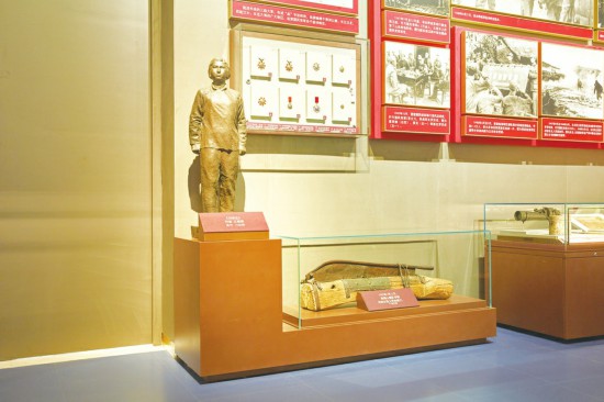 在中国共产党历史展览馆的展厅内,刘胡兰铜像和被害时反动派使用的铡刀组合陈列,刘胡兰铜像紧握双拳、紧闭双唇眼神刚毅,身后的铡刀冷冰冰地陈列在展柜中。这样一幅场景不仅勾勒出人物临危不惧、视死如归的内心状态,也无形之中把当时刘胡兰所面对敌人的环境和现场肃穆的气氛渲染出来。不仅突出了刘胡兰为了人民的解放、民族的复兴而英勇献身的大无畏革命精神,也体现出中华民族实现伟大复兴所需的强大精神力量。(中国共产党历史展览馆 供稿)