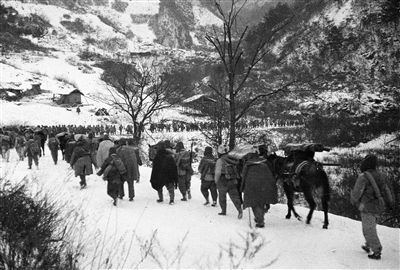 志愿军部队向汉江南岸进发。 资料图片