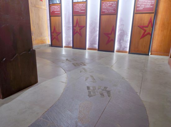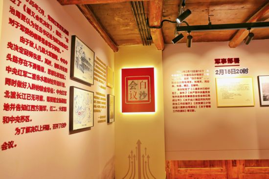 “有时向东,有时向西,有时走大路,有时走小路,有时走老路,有时走新路。”在装饰一新的白沙会议展厅的地面上,设计方刻意用地板的形状,展现了红军长征时所经历的征途曲折。