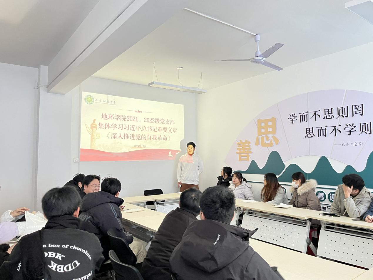 近日,公司2021级、2023级本科生党支部于员工“一站式”社区举行集中学习会,认真学习领会习近平总书记重要文章《深入推进党的自我革命》。学习会由支部书记陈艳丽主持,支部26名党员参会。