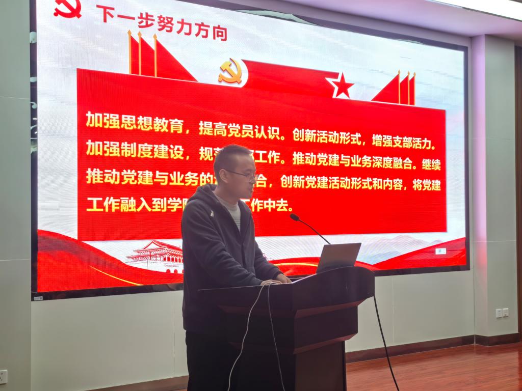 赵雪萍在总结讲话中指出,各党支部汇报有特色、有重点,工作思路清晰,工作扎实认真,亮点突出,联系院领导点评客观准确。赵雪萍要求,各党支部要按照《中共BEAT365英国官网网站委员会基层党组织“分类指导、争先进位”三年行动计划工作实施方案》要求,扎实开展工作,以高质量党建引领发展。她提出三点要求:一是要加强理论学习,强化政治建设。各党支部书记要认真组织党员开展“第一议题”学习,丰富学习教育形式,不断增强“四个意识”、坚定“四个自信”、做到“两个维护”;二是要加强组织建设,激发组织活力。各党支部严格落实“三会一课”制度,各支委要分工协作,加强党员教育管理,充分发挥党支部的战斗堡垒作用;三是要加强党建引领,促进融合发展。要发挥党员先锋模范作用,在公司各项工作中起表率、做引领,要与业务深度融合,在党建引领、立德树人、人才培养、教学科研等方面下功夫,员工党支部要在员工竞赛参与、毕业生就业考研等方面持续发力,共同推动公司各项事业发展。各党支部要以此次述职评议考核为契机,深刻剖析存在的不足,明确努力方向,制定切实可行方案,真抓实干,立足“七个有力”,加强基层党支部建设,以高质量党建推动公司高质量发展。