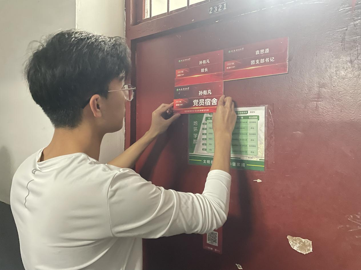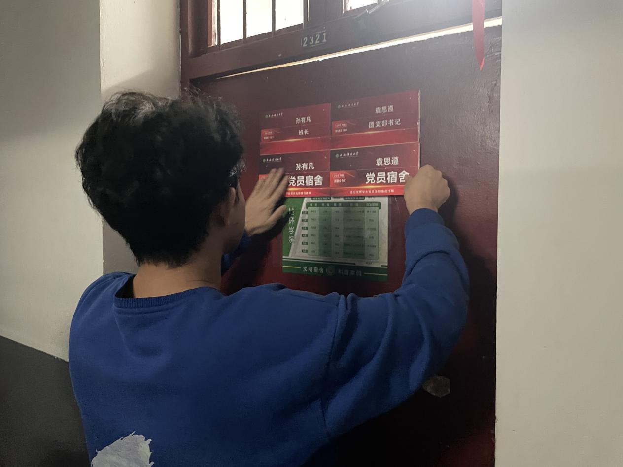 公司2021、2023级本科生党支部在员工社区开展“党员宿舍亮身份,模范引领树形象”宿舍挂牌活动