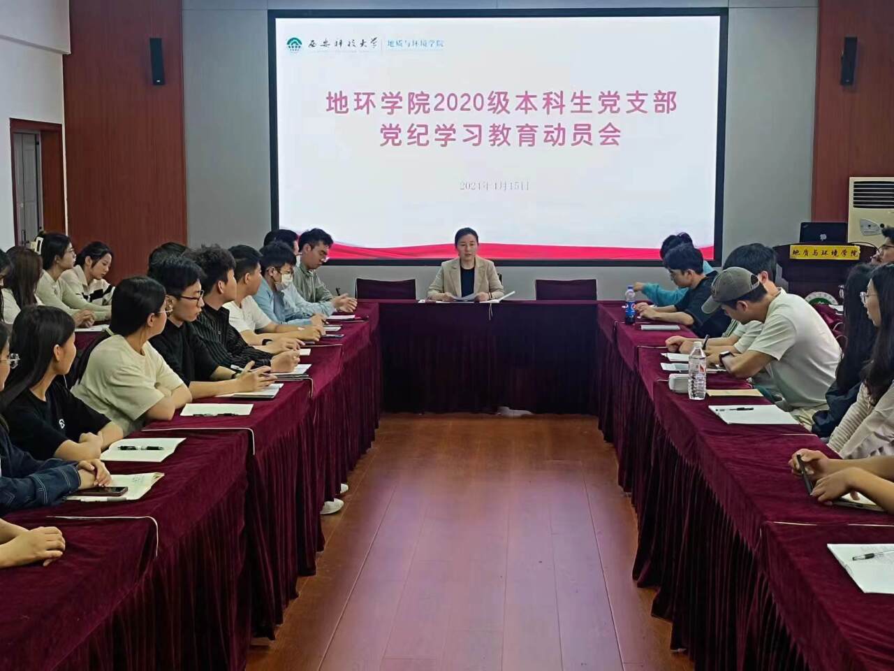 4月15日下午,公司2020级本科生党支部在骊山校园11教322室召开党纪学习教育动员会。会议由党支部书记李琳主持,支部48名党员参加动员会。
