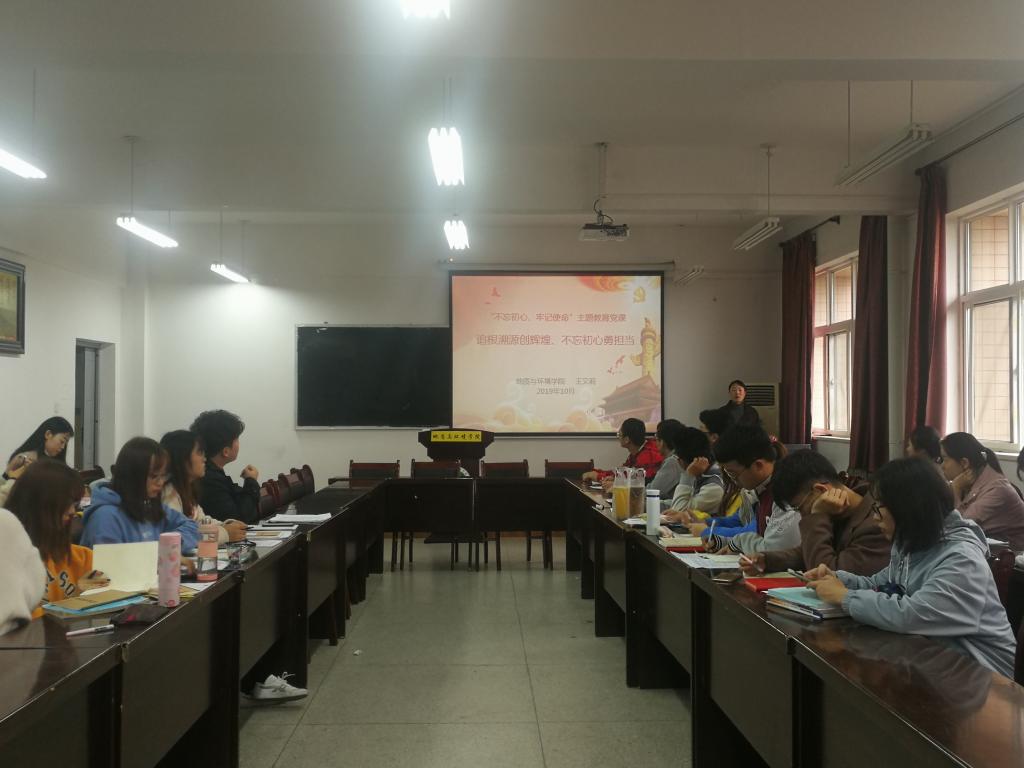 11月1日中午,beats365唯一官方网站2017、2018、2019级本科生党支部在临潼校区骊山校园11教322开展“不忘初心、牢记使命”主题教育党课。公司党委副书记王文莉为所在支部成员讲述题为《追根溯源创辉煌、不忘初心勇担当》的党课,王文莉介绍了“不忘初心、牢记使命”主题教育的意义和主要内容;结合“讲好地环故事,追根溯源创辉煌”,向支部成员讲述了地环老教师袁耀庭、徐文升等的先进事迹,讲述王双明、王佟、刘争平等在各自岗位上践行爱国奉献的理想追求的故事;最后通过介绍《我和我的西科》发展历程,结合公司目前文明校园创建等重点工作,教育员工爱校荣校,“不忘初心勇担当,牢记使命铸辉煌”。王文莉为支部党员讲授了一堂生动的党课,支部成员因公司的发展而自豪,纷纷表示,公司的发展是一代又一代西科人接续奋斗的结果,作为西科学子,将接过公司发展的接力棒,不忘初心,勇于担当,牢记使命,努力学习,砥砺奋斗,为公司各项事业发展贡献自己的力量。