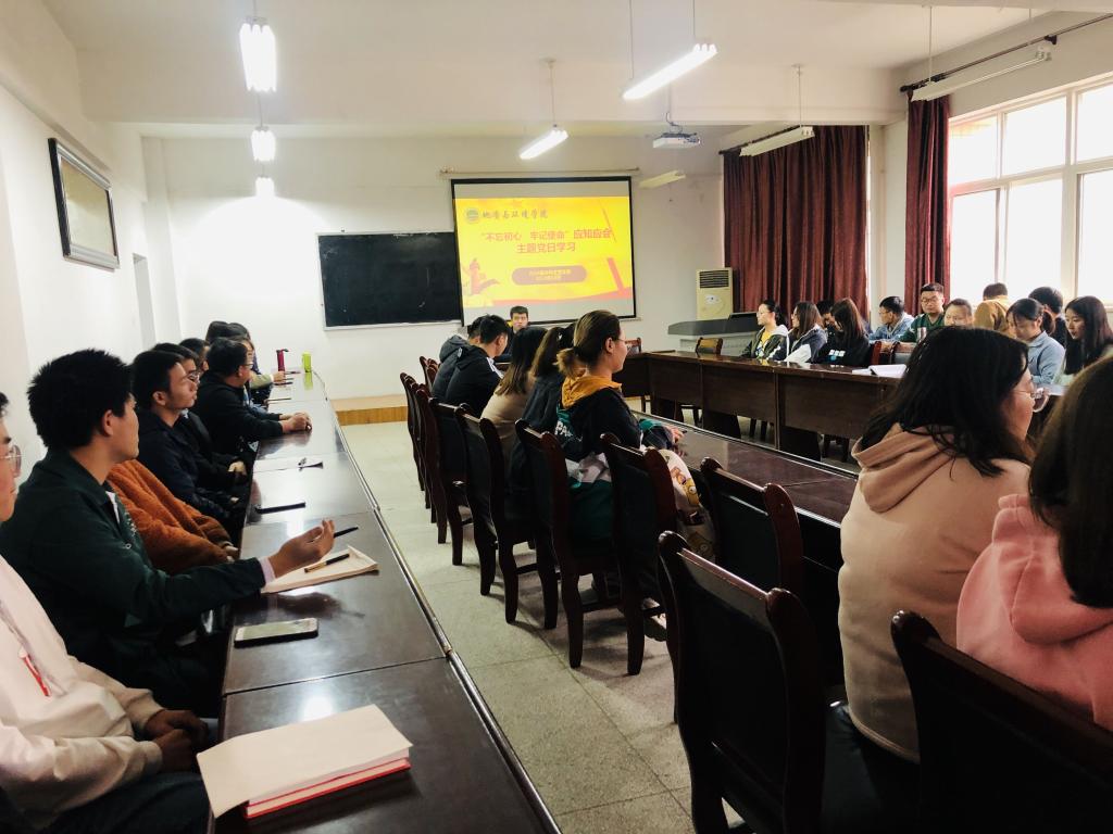 10月21日,beats365唯一官方网站2016级本科生党支部在临潼校区骊山校园11教322集中开展“不忘初心 牢记使命”应知应会主题党日学习活动,支部全体党员共计54人参加,会议由支部书记桓斌斌主持。