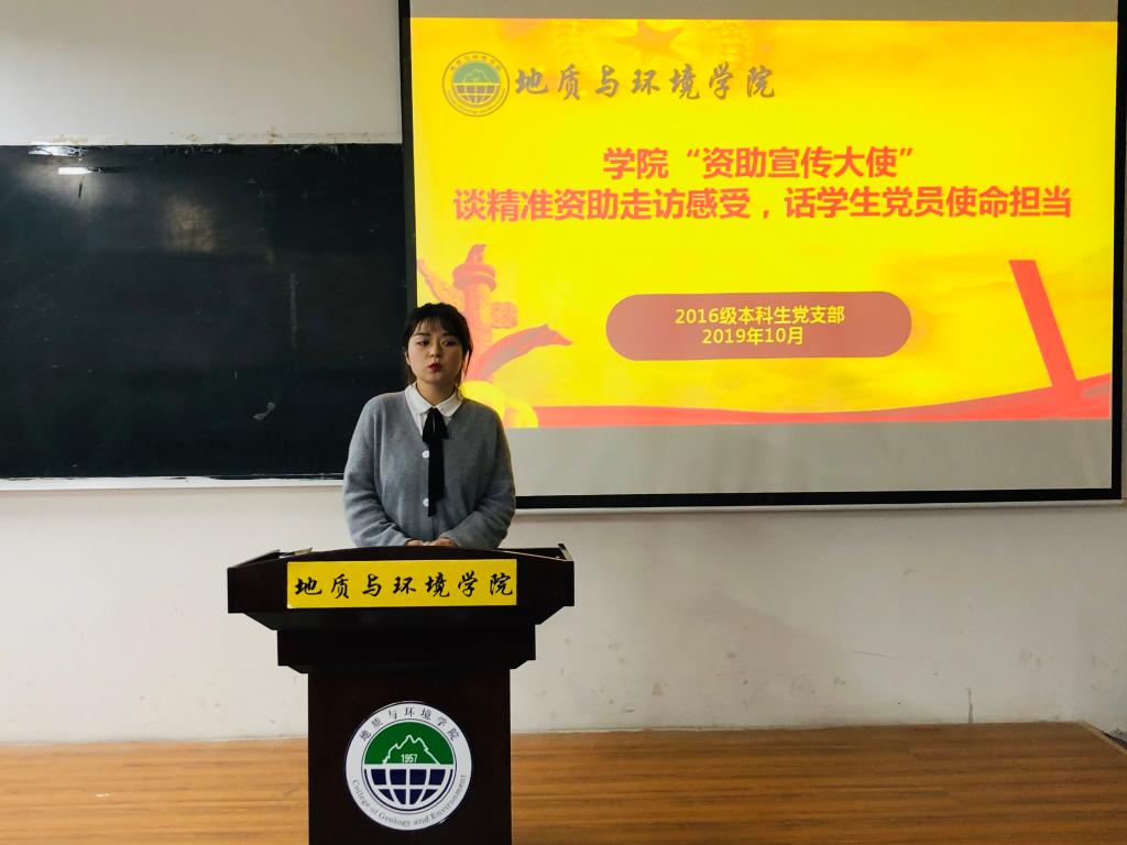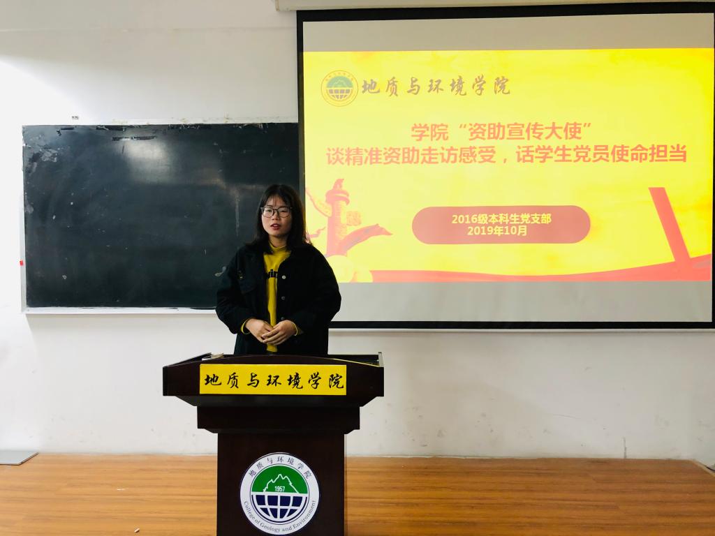 地环2016级本科生党支部集中开展公司“资助宣传大使”谈精准资助走访感受,话员工党员使命担当座谈会