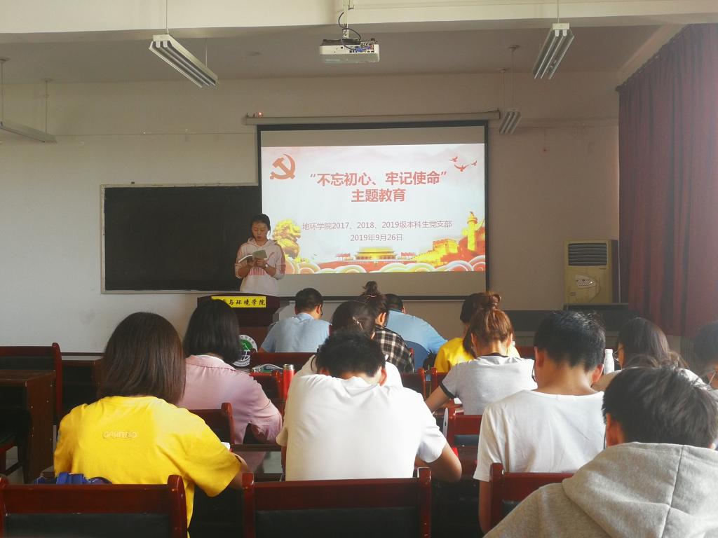 9月26日中午beats365唯一官方网站2017、2018、2019级本科生党支部在临潼校区骊山校园11教322举办“不忘初心、牢记使命”主题教育读书会,支部书记余小涛主持会议。支部党员分别领学《习近平关于“不忘初心、牢记使命”论述摘编》,会后支部党员进行了交流,大家纷纷表示会不忘入党初心,牢记使命,会认真结合日常学习、生活,在学懂、弄通、做实上下功夫,讲奉献、敢担当,在员工中起模范带头作用。支部书记余小涛要求全体党员坚持读原著、学原文、悟原理,认真研读《习近平关于“不忘初心、牢记使命”论述摘编》,扎实开展“不忘初心、牢记使命”主题教育,将教育实效落实到日常工作、学习、生活中。