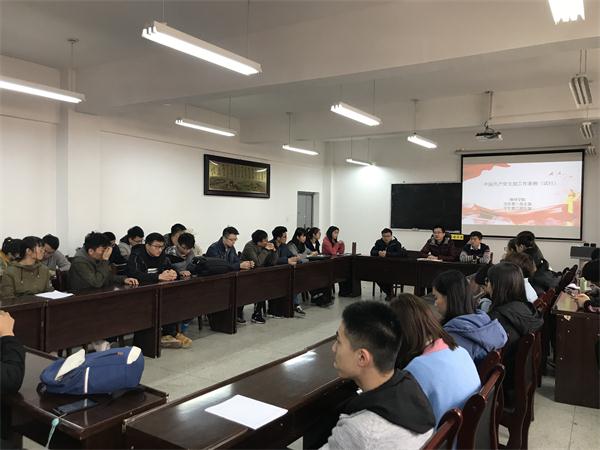 11月30日,beats365唯一官方网站第一第二党支部在临潼校区11教322集中学习《中国共产党支部工作条例(试行)》。会议由员工第一党支部书记林伟主持。会上要求全体党员要提高认识,提高站位,从全面从严治党的高度,讲政治的高度来理解《条例》内容,要将条例内容作为支部建设的根本,做好支部建设,把工作落细,抓出成效;同时,两支部还就党员发展、党员再教育、特色党支部创建、模范作用发挥等工作进行了交流。