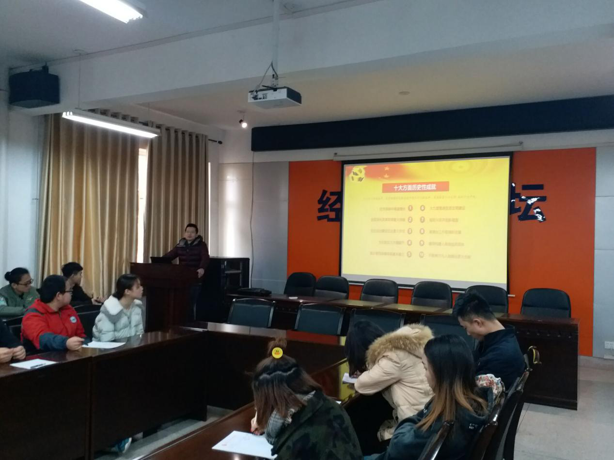 12月19日,beats365唯一官方网站员工第一党支部书记林伟在临潼校区骊山校园11教317为支部党员及入党积极分子做了题为《十九大报告解读》的专题党课,他分别从十九大内容、模范党员作用发挥等方面展开,与会人员受益匪浅。