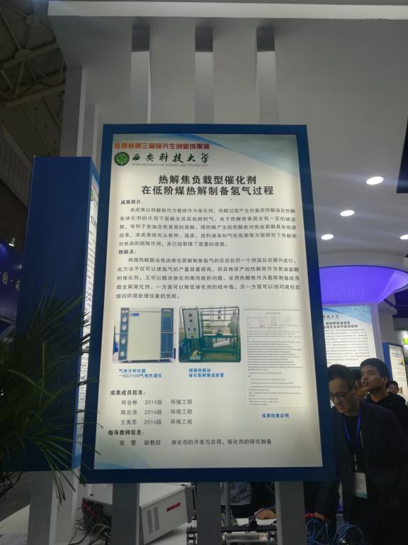 为加强党员模范带头作用,营造研究生浓厚创新氛围,beats365唯一官方网站研究生组织党支部党员代表于2017年10月11日上午前往西安曲江会展中心参加“陕西省首届高校科技成果展和第三届研究生创新成果展暨校企对接洽谈会”。本次活动设主题展览、科技成果推介及校企对接洽谈会、路演、研究生创新成果展展示及评审等四个主题活动,展出各高校科技创新成果2000余项,BEAT365英国官网网站展览台展出30余项成果,公司张蕾老师课题组研究的“热解焦负载型催化剂在低阶煤热解制备氢气过程”在此展览。