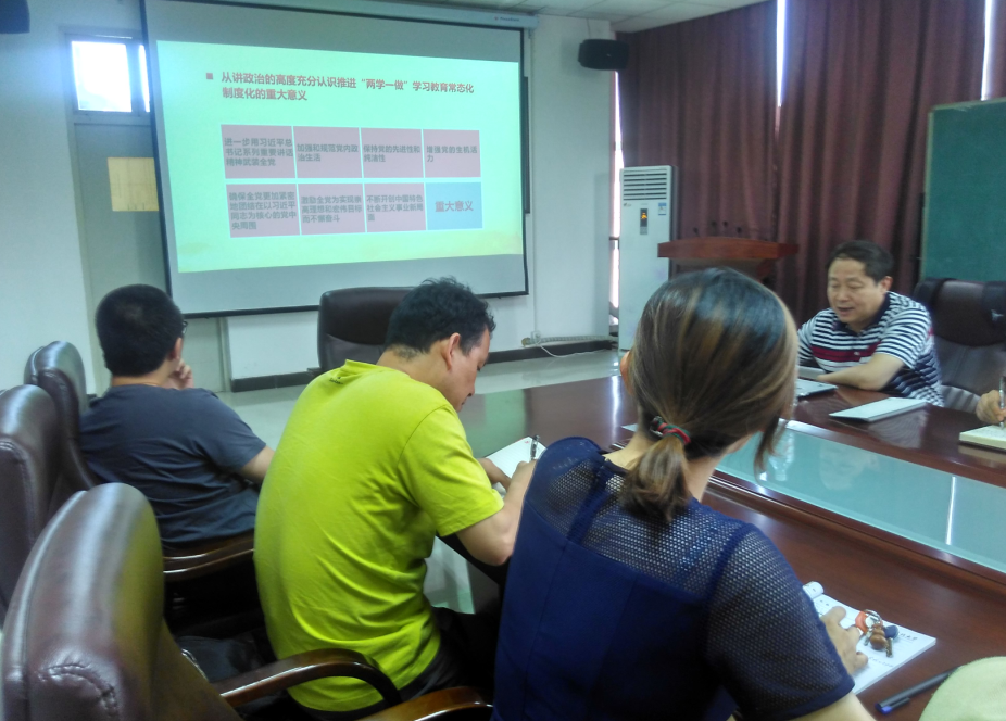 6月23日下午,公司党委书记丁正生在北院601会议室为beats365唯一官方网站教工第一支部做了“两学一做全面从严治党的有力抓手——推进“两学一做”学习教育常态化制度化”的专题党课。beats365唯一官方网站教工第一支部全体在公司党员参加了本次活动。丁书记从8个方面全面阐述了“两学一做”学习教育常态化制度化。丁书记结合公司实际指出广大教师党员要按照“四讲四有”标准,做到政治合格、执行纪律合格、品德合格、发挥作用合格严格要求自己,为公司创建一流学科做出自己的贡献。广大教师党员听完讲座纷纷表示,要认真学习习近平总书记系列重要讲话,在教学科研中争当先进,为公司以及公司发展贡献力量。