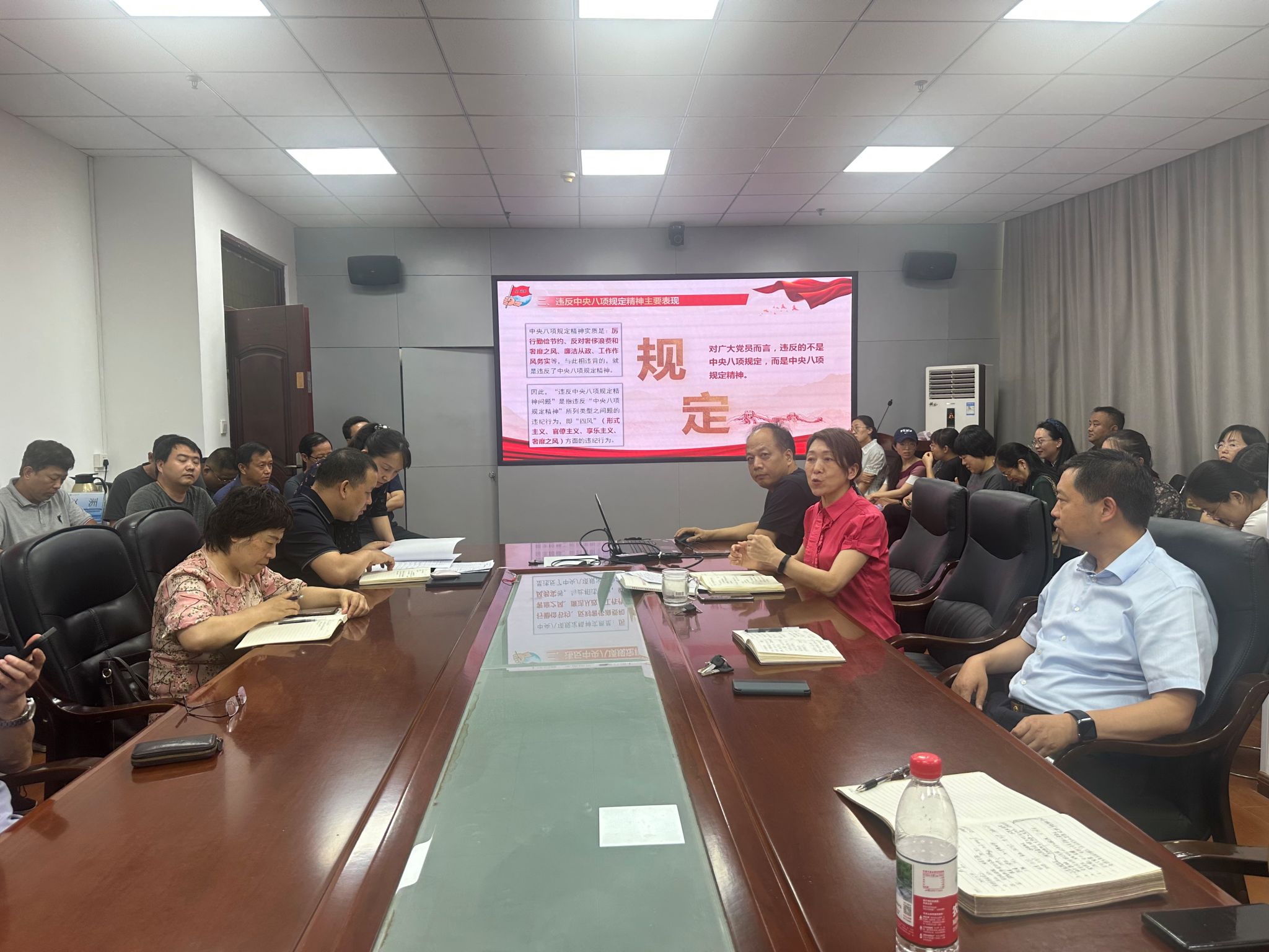 结合公司工作实际,赵雪萍对全体教职工提出明确要求:一是扎实开展学习教育,要求全体教职工认真深入贯彻中央八项规定精神学习教育,确保入脑入心。二是坚持常抓不懈,强调作风建设需久久为功,推动中央八项规定精神内化于心、外化于行,使之成为自觉遵循和行为习惯,从而弘扬优良党风。三是严守纪律规矩,要求全体教职工在工作中必须严格遵照公司及公司的各项规章制度和要求,确保各项工作规范有序开展。