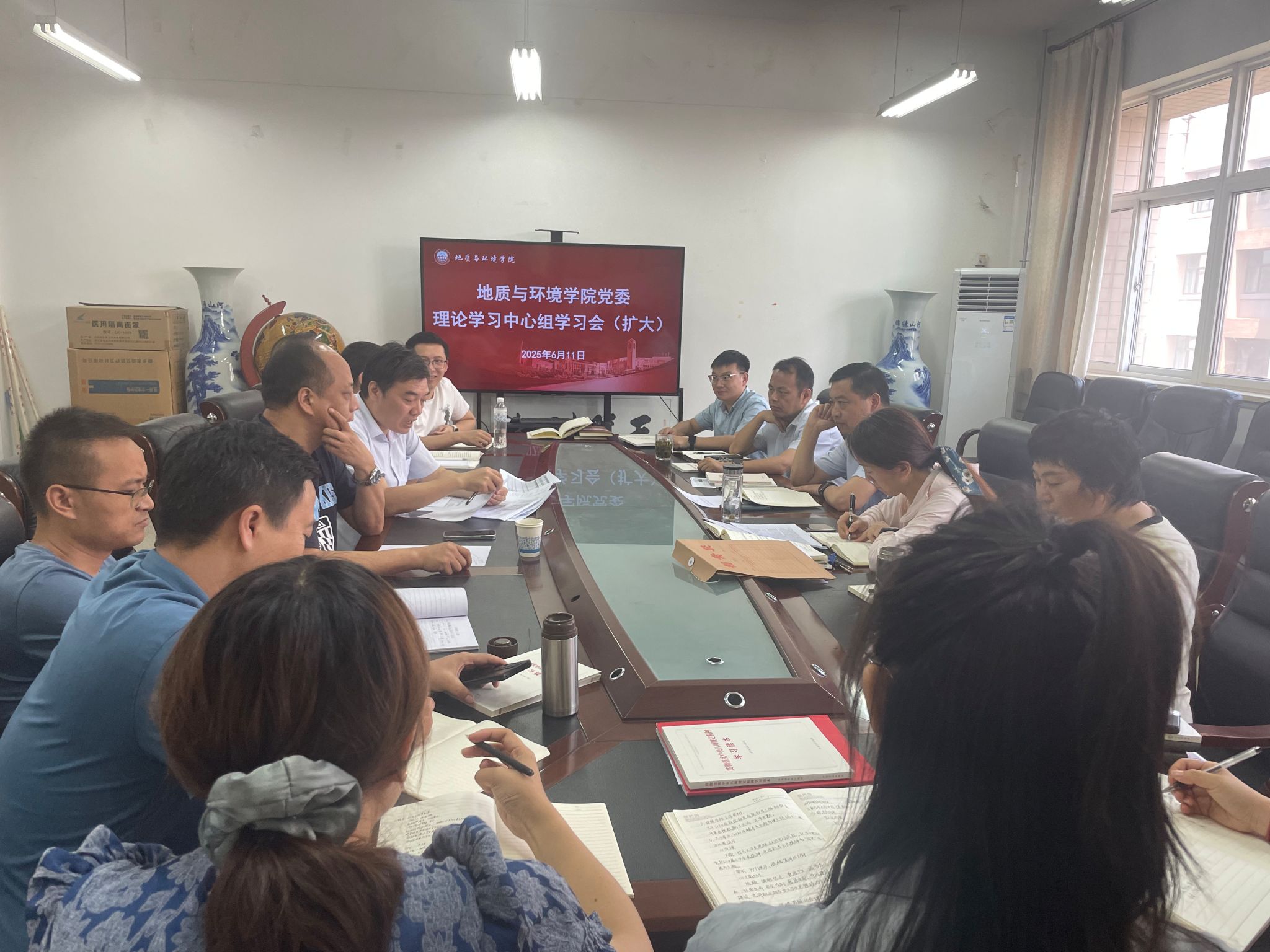 6月11日,公司在骊山校园11教321会议室召开党委理论学习中心组学习会(扩大),公司班子成员、各系(室)主任、各教工支部党支部书记、科级干部和全体辅导员参会,公司党委书记赵雪萍主持会议。