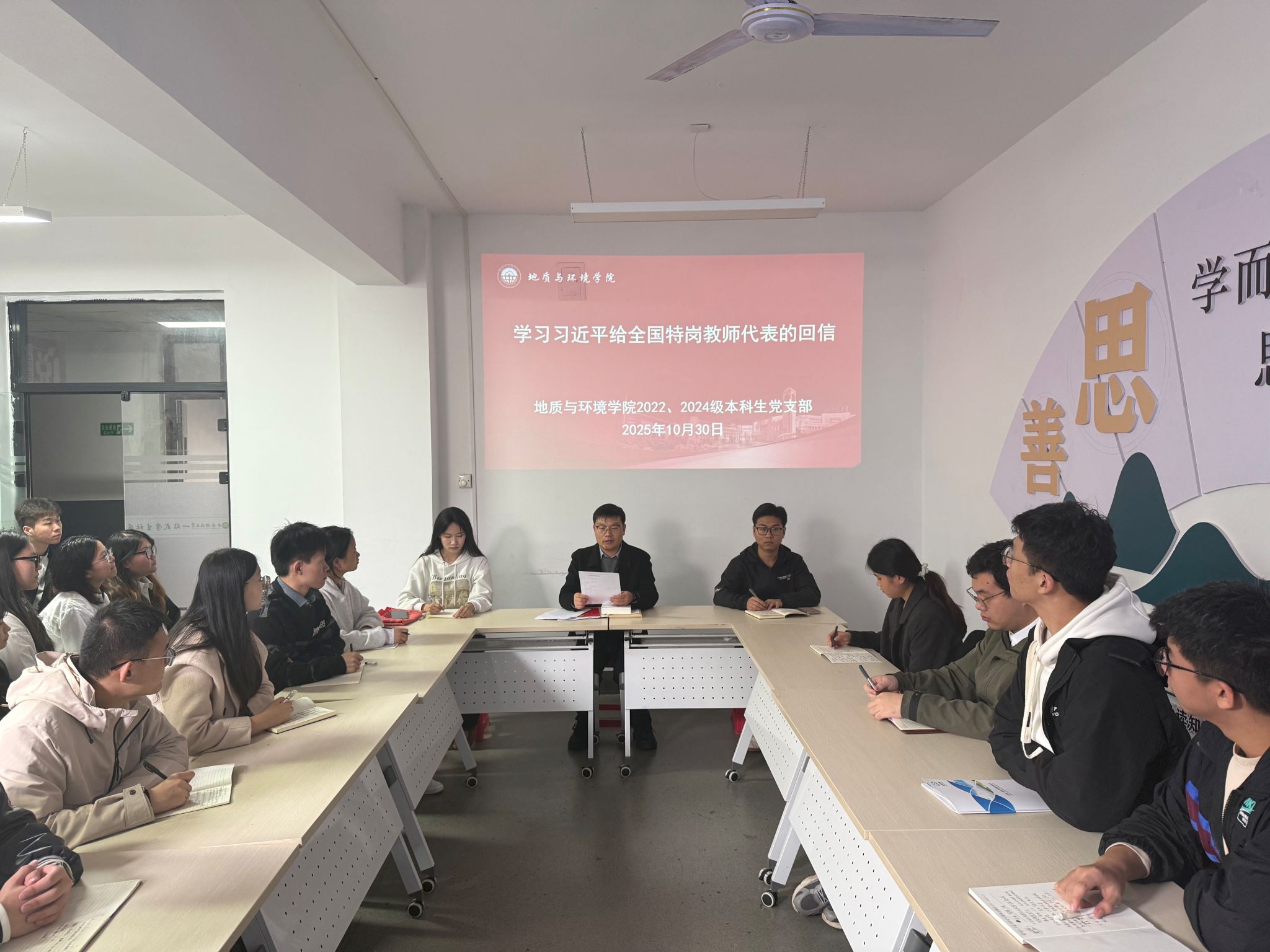 会议集中学习了“一体推进教育科技人才事业发展”章节内容。会议强调,作为青年学子,既要夯实专业知识根基,也要深刻理解“三位一体”战略布局的内在逻辑——教育为学科发展筑牢人才底座,科技为地质勘探、环境治理突破技术瓶颈,人才则是连接教育成果与科技创新的核心纽带。