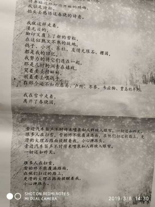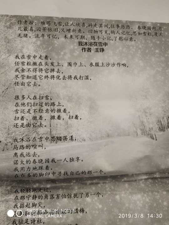 2019年3月8日下午,​beats365唯一官方网站一年一度的庆祝“三·八”妇女节传统活动之“​beats365唯一官方网站女教工才艺大赛”如期而至。本届大赛在沿袭往届大赛的书法、绘画、厨艺、手工等才艺之外,首次设立了诗歌创作组。王铮老师提交的诗歌作品《我沐浴在雪中》、《生命咏叹》抒发了自己对生活的热爱之情,也影响着读诗的我们,使我们更加珍惜现在的幸福生活。