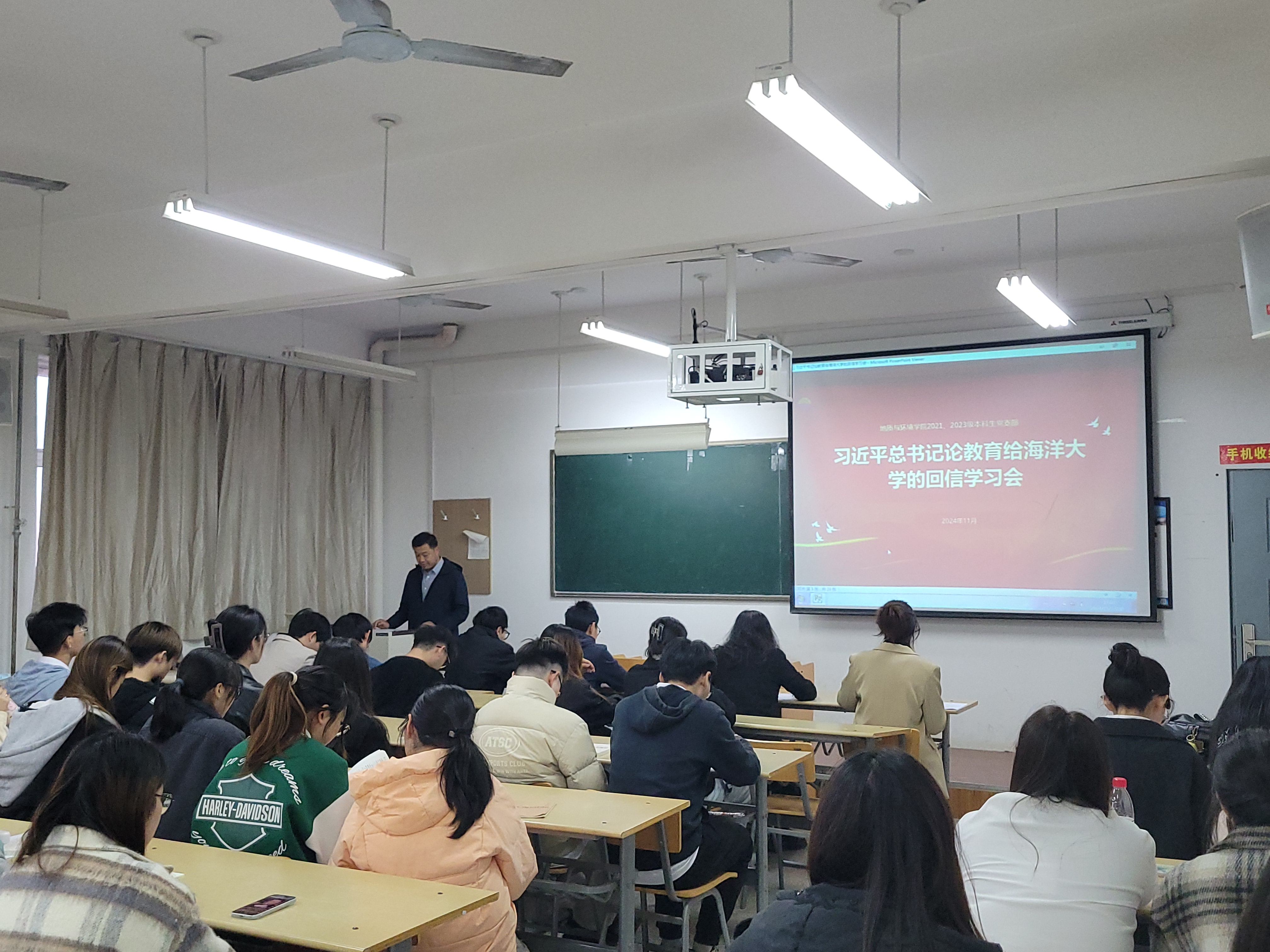 会上,孙学阳带领支部全体党员学习习近平总书记给中国海洋大学全体师生重要回信精神,他指出,习近平总书记给中国海洋大学全体师生的重要回信,立意高远、内涵丰富、催人奋进,表达了对加快高等教育高质量发展的高度重视,对建设教育强国的殷切期盼。