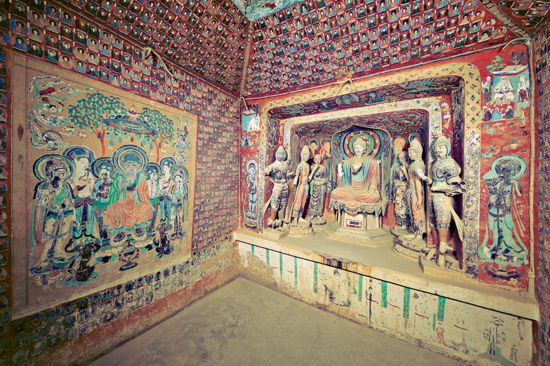 敦煌莫高窟1961年由国务院公布为第一批全国重点文物保护单位,1987年作为我国首批申报项目列入联合国教科文组织世界遗产名录。图为敦煌莫高窟第322窟的壁画和彩塑。 国家文物局供图