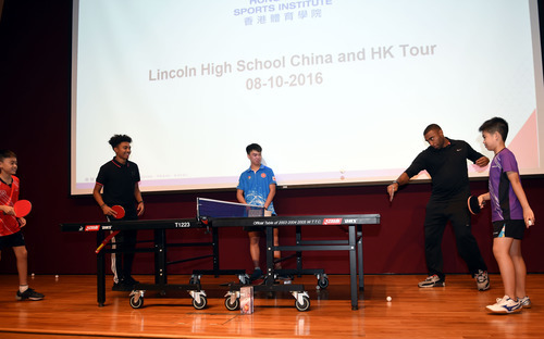 2016年10月8日,香港乒乓球运动员与林肯中学员工进行交流比赛。当日,来自美国华盛顿州塔科马市林肯中学的师生到访香港体育公司