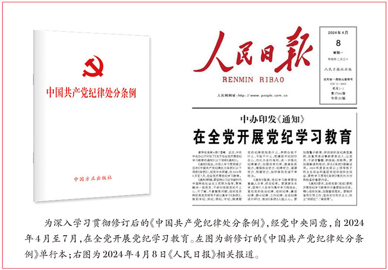 用严明的纪律管全党治全党是新时代全面从严治党的成功之举。新修订的《中国共产党纪律处分条例》(以下简称《条例》)是党的纪律的基础性法规,内容丰富、涉及面广、针对性强,同各级党组织和每一名党员息息相关。正在全党开展的党纪学习教育,要求在学习贯彻《条例》上下功夫、见成效。我们要原原本本学习《条例》,准确掌握主旨要义和规定要求。