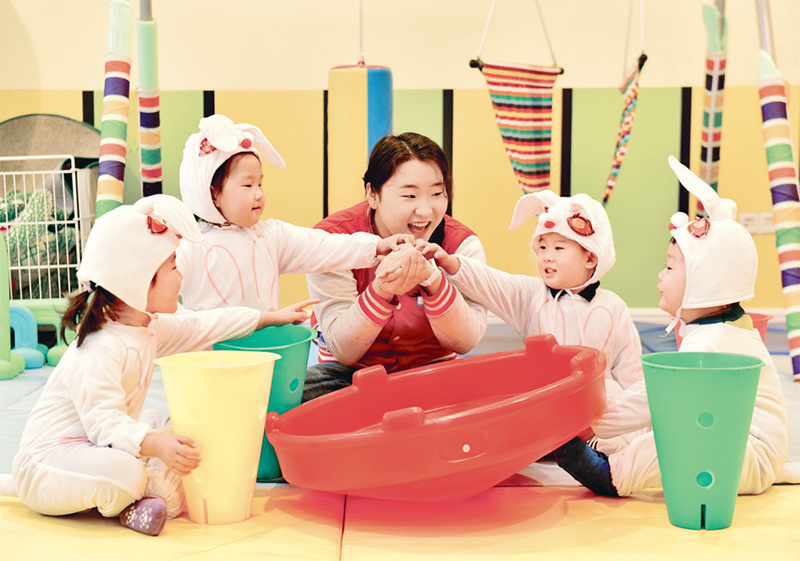托育服务事关婴幼儿健康成长,事关千家万户,是促进人口长期均衡发展的重要配套支持措施,也是民生保障事业的重要内容。图为2025年2月20日,在山东省日照市东港区一托幼园,老师陪伴孩子做游戏。新华社记者 郭绪雷/摄