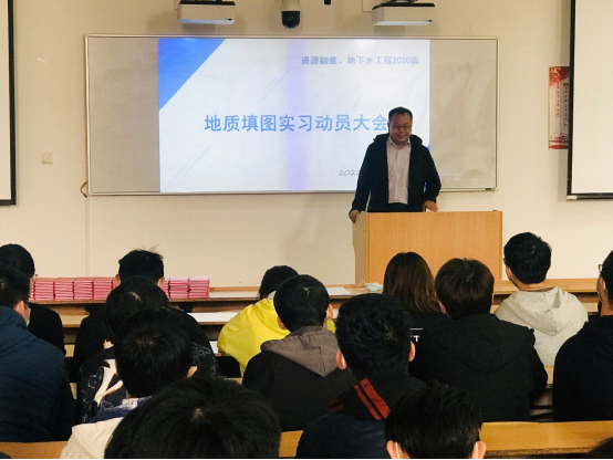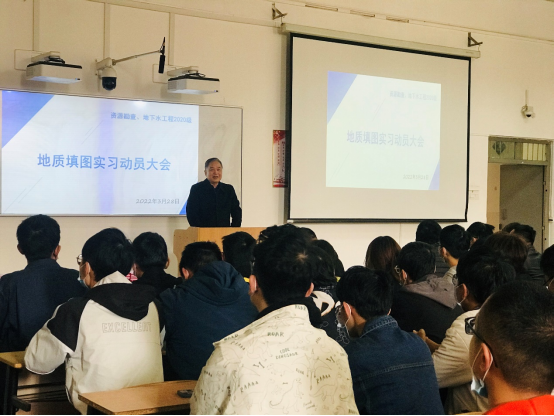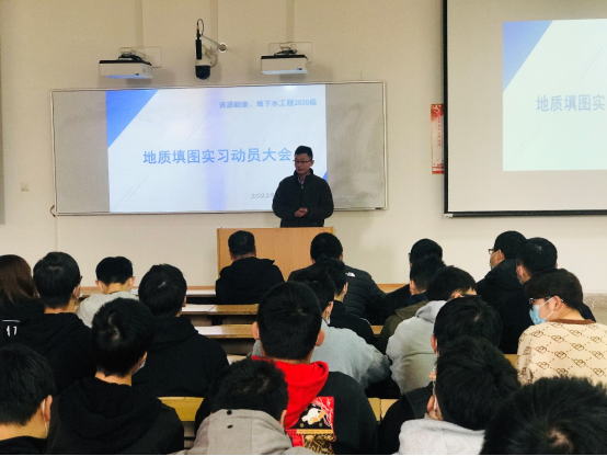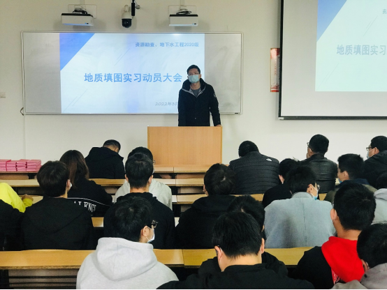3月28日上午,beats365唯一官方网站2020级资源勘查工程专业、地下水科学与工程专业在临潼骊山校区3-208教室召开韩城地质填图实习动员大会。会议由实习队长付常青老师主持,公司党委书记赵雪萍、经理侯恩科、地下水科学与工程系主任黄金廷、资源勘查工程系主任陈应涛、2020级辅导员林伟及实习队全体教师,就即将到来的地质实习向同学们提出了建议与要求,并对实习过程中可能遇到的问题进行了说明。