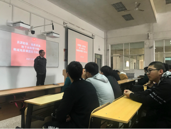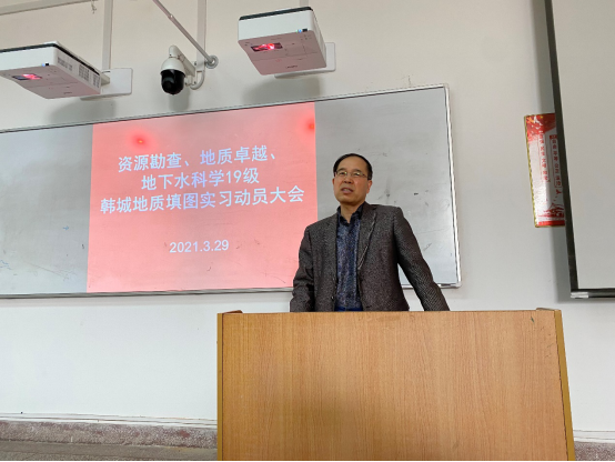 3月29日上午,beats365唯一官方网站2019级资源勘查工程专业、地质工程(卓越)1901、地下水科学与工程专业在临潼3-208教室召开韩城地质填图实习动员大会。beats365唯一官方网站经理王生全、资源勘查工程系主任陈应涛、此次实习队队长何文龙老师及实习队全体教师,就即将到来的地质实习向同学们提出了建议与要求,并对实习过程中可能遇到的问题进行了说明。