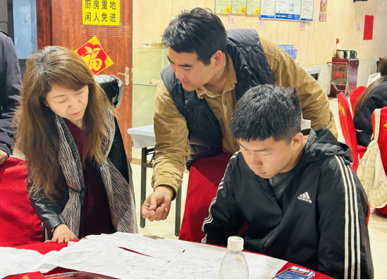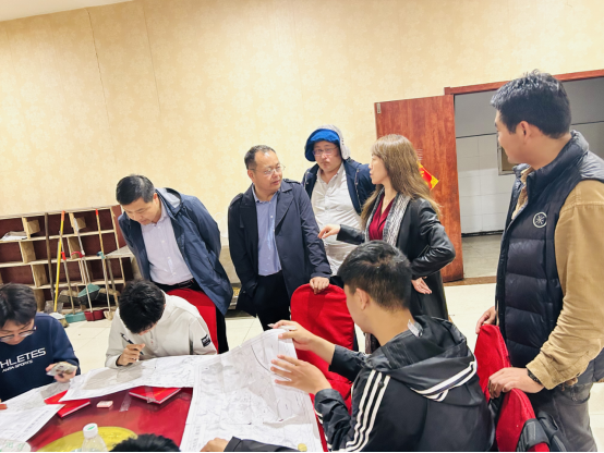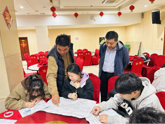 公司领导来到员工的填图实习连图环节现场,何文龙老师正讲述填图区域的地层演化史和连图规则,同学们听得全神贯注,孙学阳经理对实习基地的学习生活环境给予了充分肯定,对全体师生发扬地质工作者吃苦耐劳的精神积极开展野外实践教学的优良传统给予了高度赞扬。