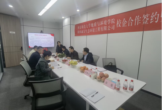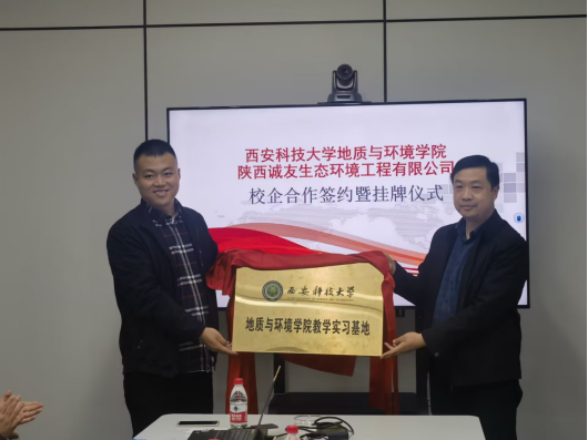 为扎实推进毕业生就业工作,深入调研企业人才需求,促进校企深度合作。4月25日,公司经理孙学阳带领资源勘查工程系党支部书记陈跃、地质工程系副主任唐皓和地下水科学与工程系副主任路拓前往陕西诚友生态环境工程有限公司走访调研。陕西诚友生态环境工程有限公司总经理桑宏斌、副总经理席国强及各部门主要领导出席座谈会。双方就员工就业、员工联合培养、校企科研合作等方面进行了深入交流和探讨。经理孙学阳与总经理桑宏斌签署了校企合作协议,并进行了揭牌。