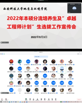 9月3日下午,地质工程系按照公司《关于开展2022年本硕分流培养生及”卓越工程师计划”生选拔工作的通知》要求,线上举办了2022级“卓越班”及“本硕连读”生选拔宣传动员工作会议,邀请了公司副经理赵洲为宣讲人,地质工程系主任马建全主持了会议活动。