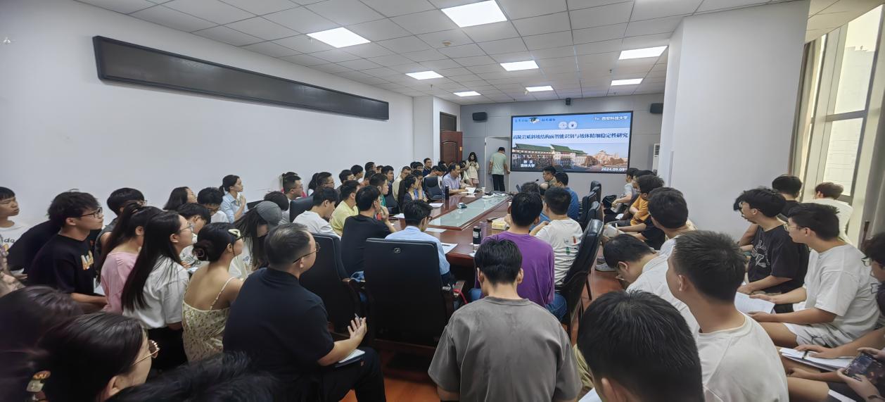 张文教授做了题为“高陡岩质斜坡结构面智能识别与坡体精细稳定性研究”的学术报告。报告首先以川藏铁路工程等系列重大工程建设需求分析为背景,提出了高陡岩质斜坡研究的关键科学问题,从斜坡高精度实景模型构建、岩体结构面多源自动识别解译、块体精细描述与滚石动力学分析、斜坡三维整体稳定性与灾变分析等方面进行了详细讲授和成果分享。报告结束后,参会师生积极提问,围绕数据处理、智能识别技术、渗流与结构面间的关系、热红外应用技术等问题进行了深入交流和探讨。