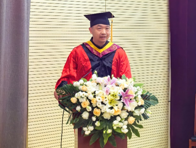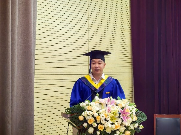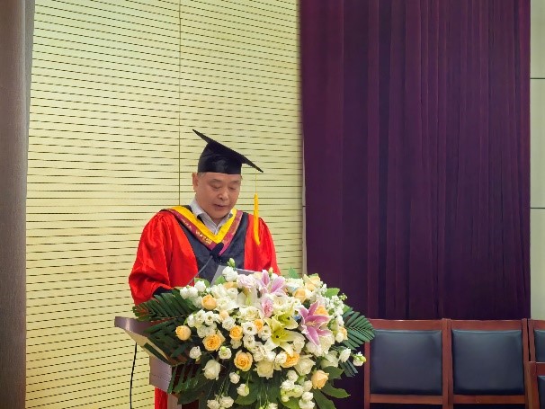 导师代表鲍园教授回顾了与同学们相处的点点滴滴,赞扬了毕业生们在学业和科研上的努力与拼搏精神。他希望毕业生们在未来的人生道路上,无论遇到什么困难,都能保持积极乐观的心态,坚守自己的理想和信念,不断提升自己的专业素养和综合能力。同时,他也欢迎毕业生们常回公司看看,分享自己的成长与成就。