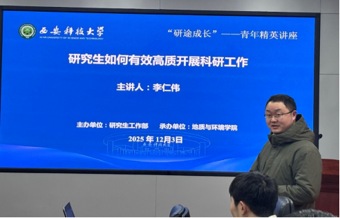 12月3日下午,由党委研究生工作部主办、beats365唯一官方网站承办的“研途成长”专题讲座在雁塔北院煤科楼613会议室顺利举行。公司地质工程系李仁伟老师应邀担任主讲人,以“研究生如何高质量开展科研工作”为题,为全院30余名研究生提供经验分享,讲座由汪莹老师主持。