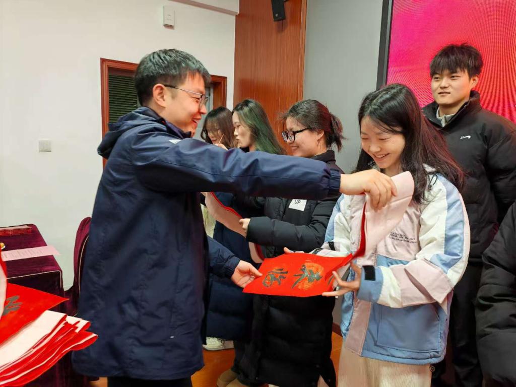 活动现场,气氛热烈而温馨。与会老师为国家励志奖学金获得者颁发喜报,并向受助同学们赠送了暖心春联。这份特别的礼物不仅传递了新年的祝福,更让同学们感受到了公司和公司的关怀与温暖。