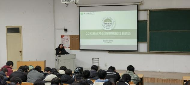 1月6日,为扎实推进2025年寒假安全教育管理工作,公司于骊山校园9教105室召开2023级本科生寒假安全教育大会,辅导员韩蕊主持,23级全体员工参会。