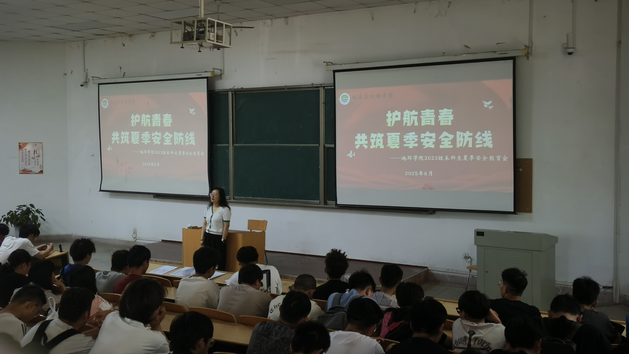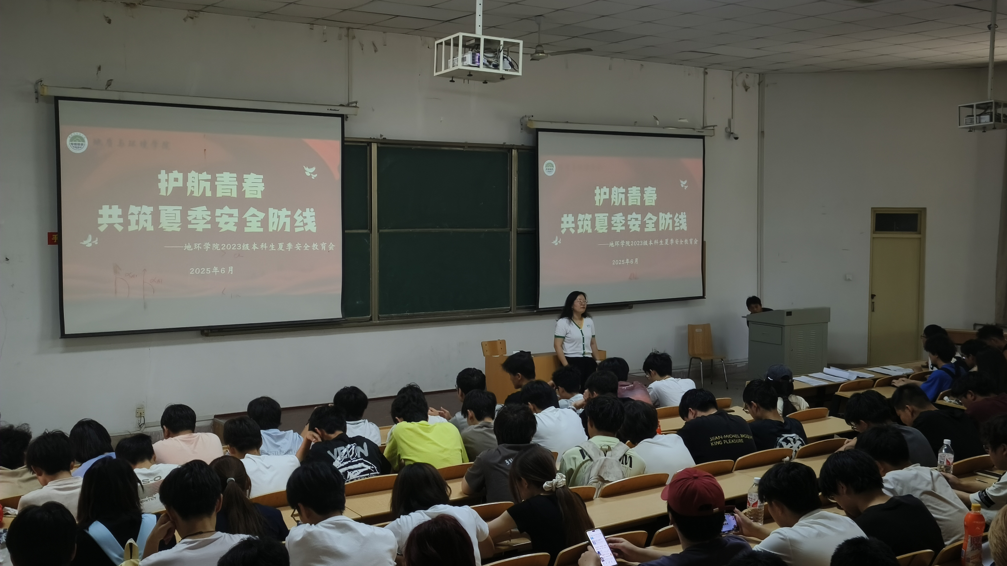 会上,辅导员韩蕊重点强调了端午假期安全注意事项。她提醒同学们出行务必选择正规交通工具、遵守交通规则,避开地质灾害易发区和人员密集场所等危险区域;注意饮食卫生,防范食物中毒;离校员工需关好宿舍门窗、切断电源,留校员工要严格遵守宿舍规定,严禁使用违规电器。同时,她要求同学们及时向家长和老师报备行程,保持通讯畅通,以便遇突发情况能及时获得帮助。此外,会议还就日常安全防护进行了全面提醒,包括增强人身安全意识、妥善保管个人财物、以及提升网络安全素养等。