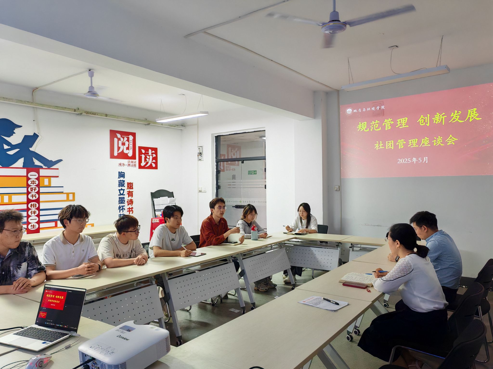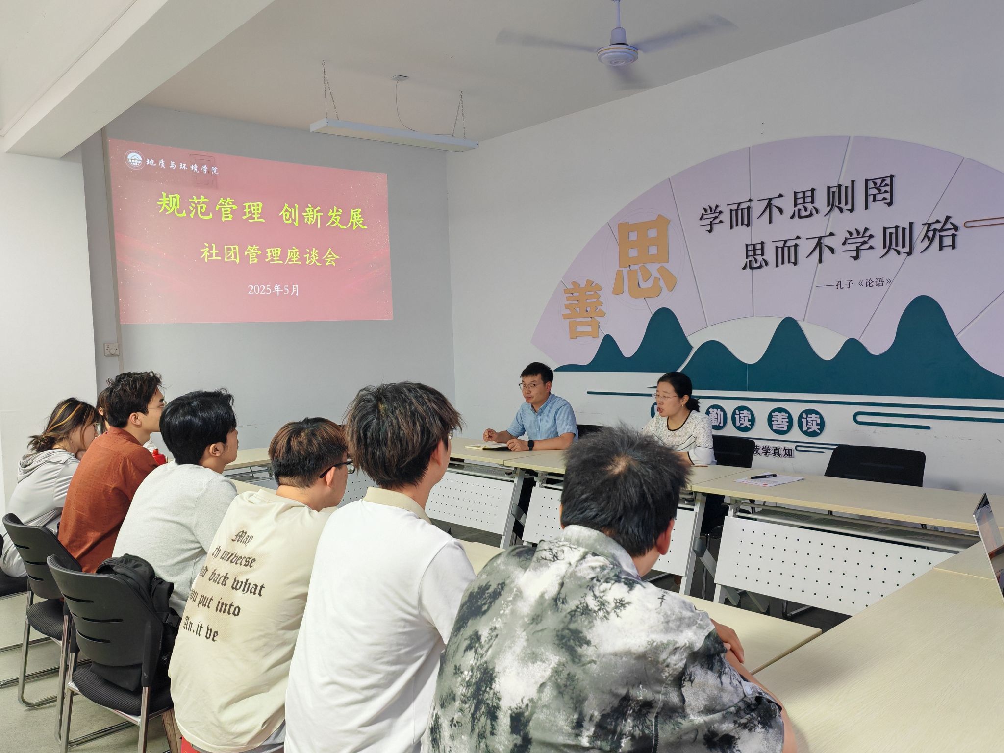 在交流环节,新空气环保协会、棋友协会、社交礼仪协会的负责同学分享了社团发展历程中的收获,也坦诚指出活动形式单一、成员积极性不足、宣传薄弱等困境。公司学社联员工干部立足校级管理视角,为提升社团活动质量与成员素养提出建议。随后,参会人员热烈研讨,围绕问题提出搭建共享平台联合举办活动、制定激励制度、打造宣传矩阵等方案,助力社团更好发展。