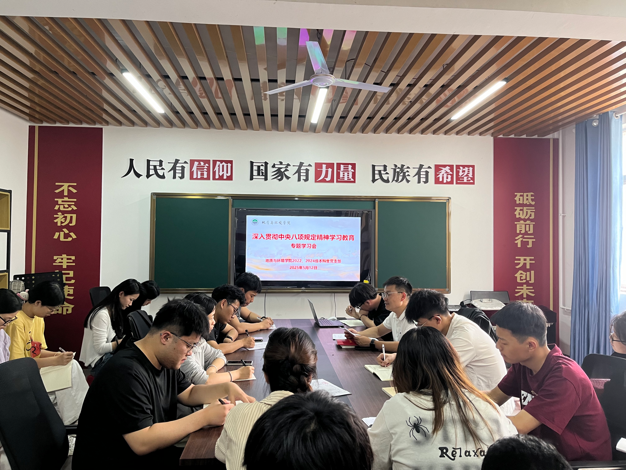 5月12日,公司2022、2024级本科生党支部在“一站式”员工社区召开深入贯彻中央八项规定精神学习教育专题学习会,支部党员参加会议,支部书记余小涛主持会议。
