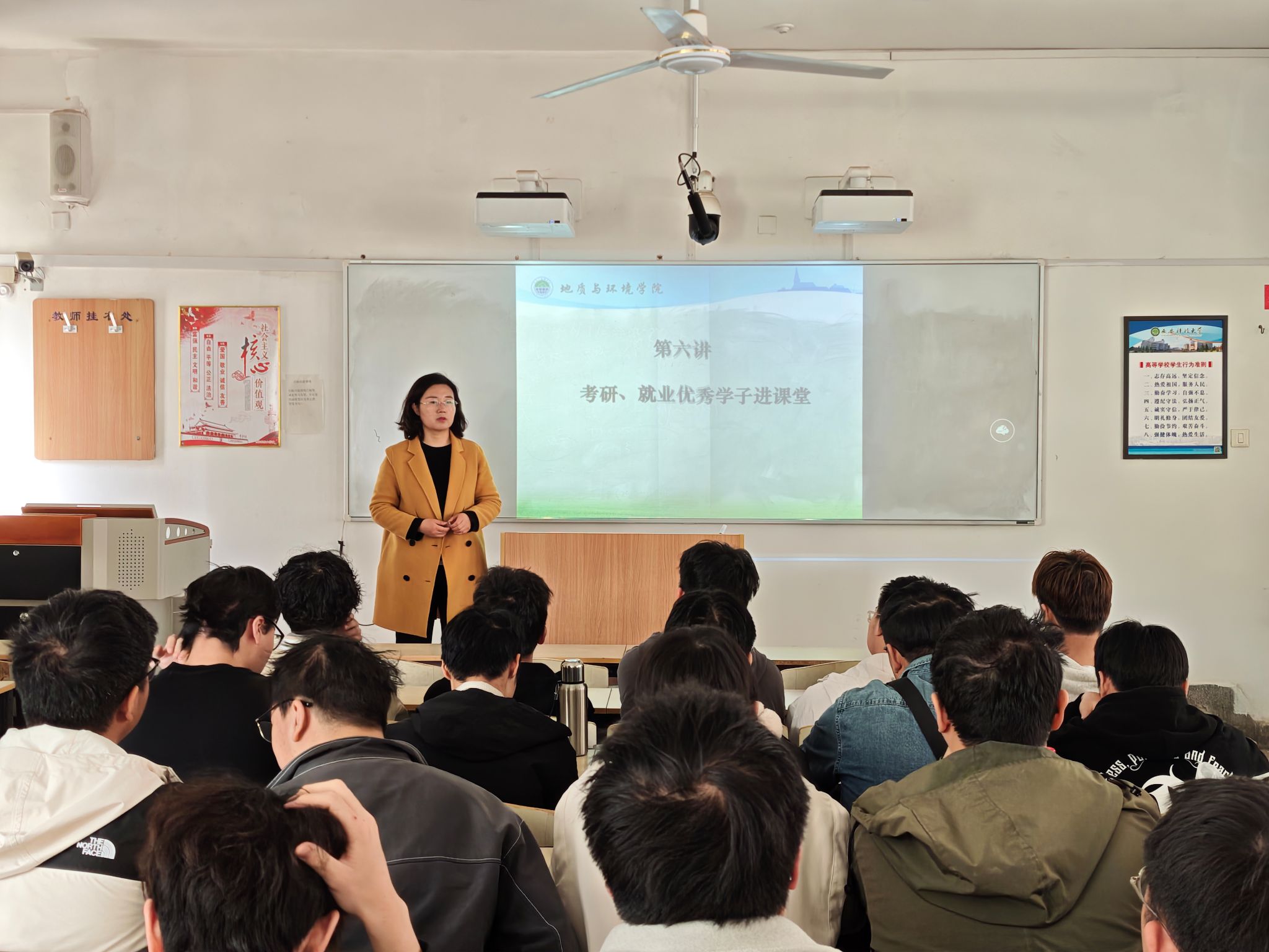 为激发同学们就业积极性,帮助大家明晰就业形势、强化就业意识、提升个人核心竞争力,同时充分发挥优秀员工的榜样示范与引领作用,推动优良学风建设迈上新高度,4月3日,公司组织 2025 届考研就业优秀员工代表走进资源勘查工程专业 2026 届毕业生就业指导课堂,开展考研就业分享交流会。