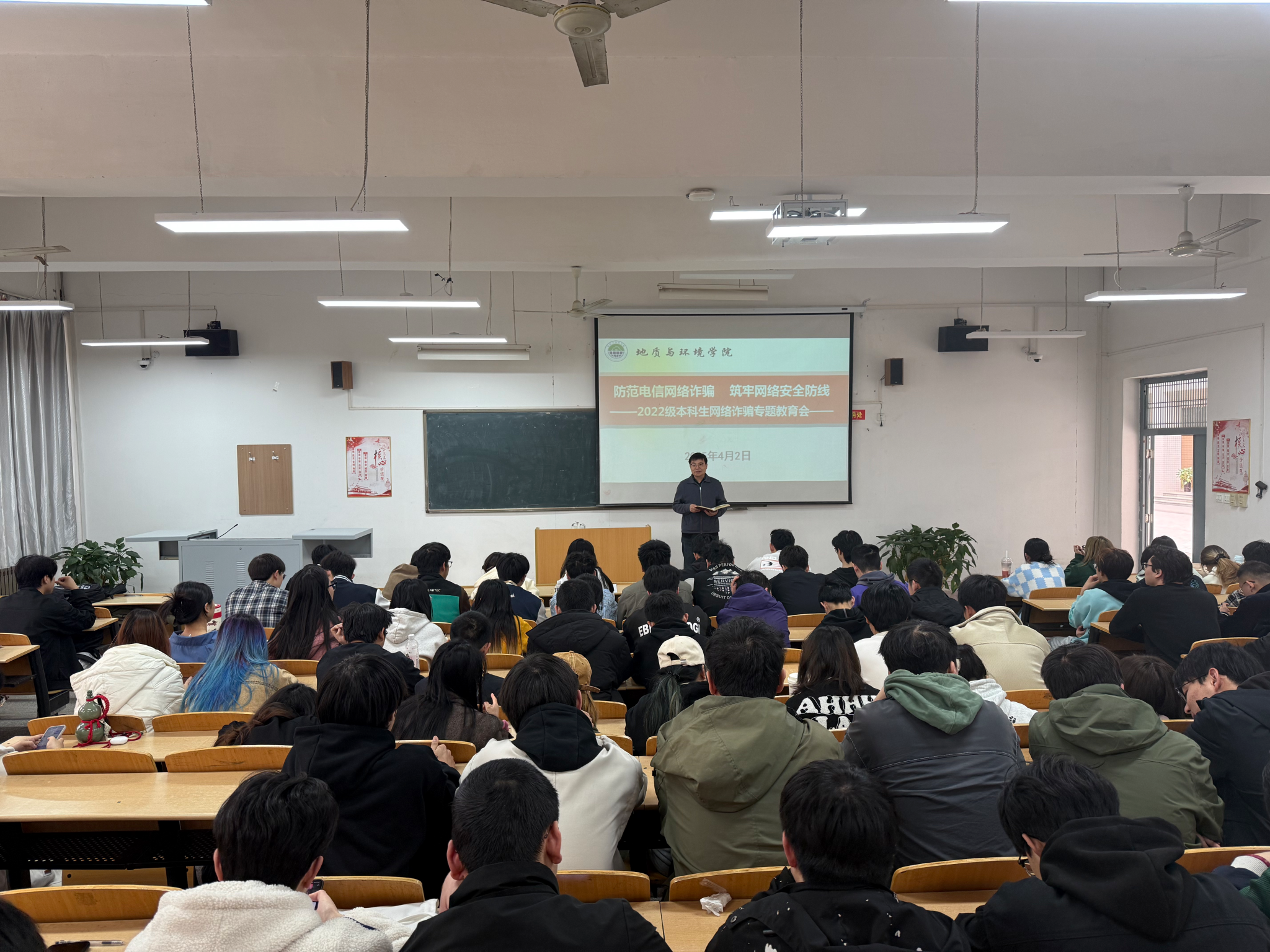 4月2日,公司2022级本科生在骊山校园9教107召开防范网络电信诈骗专题教育会,2022级全体本科生参会,会议由带班辅导员余小涛主持。