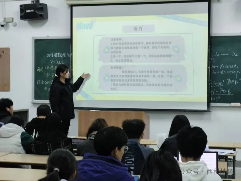 国家励志奖学金获得者地下水科学与工程2201班黄福静同学为大家分享了备考英语四六级的相关学习方法。她结合自身的备考经历,为同学们带来了全面而实用的备考方法。黄福静同学建议大家制定合理的背单词计划,利用单词书、手机 APP 等多种方式扩大词汇量。