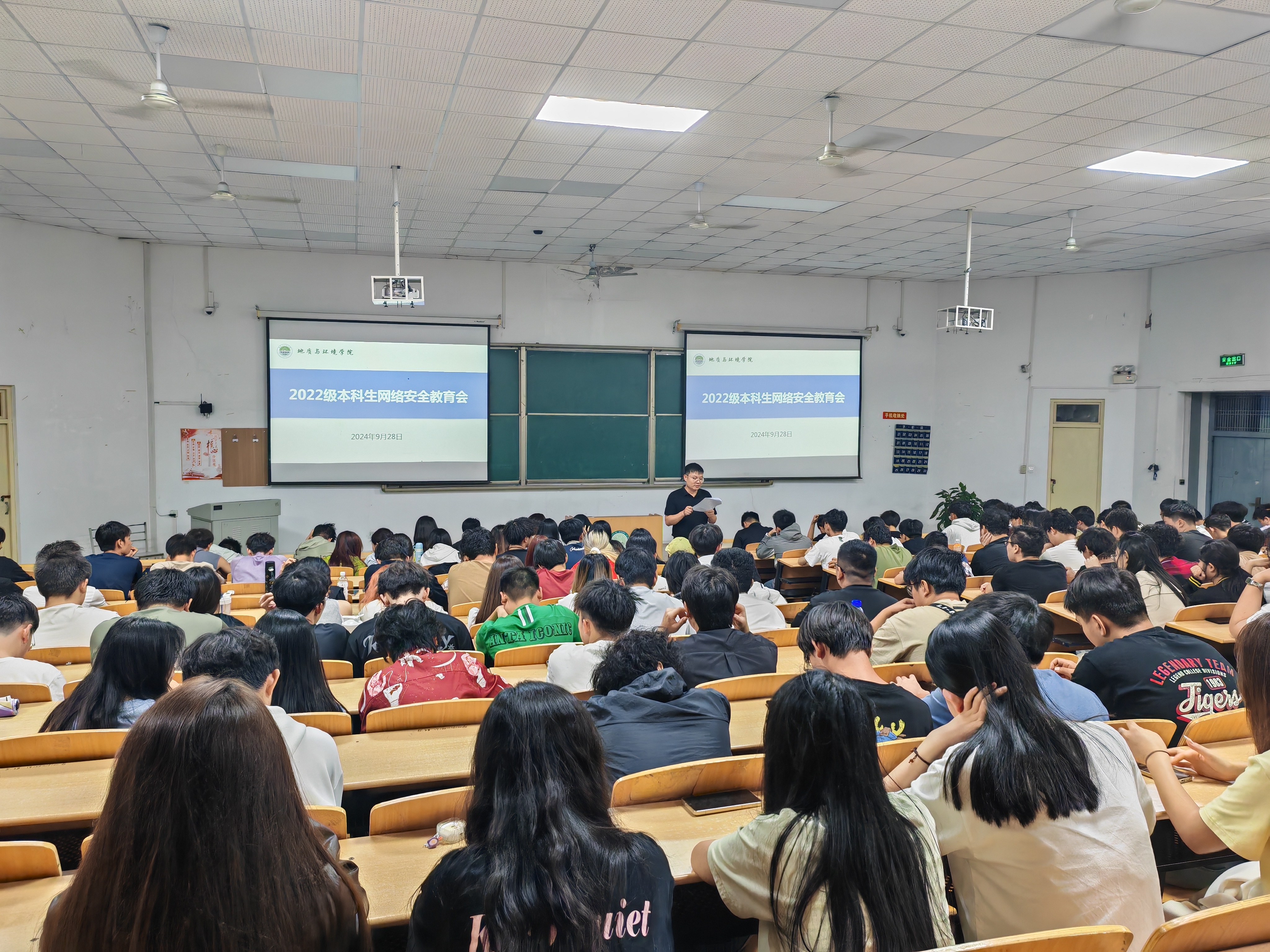 9月28日,公司在骊山校园9教105召开2022级本科生网络安全教育会,2022级全体本科生参会,带班辅导员余小涛主持会议。