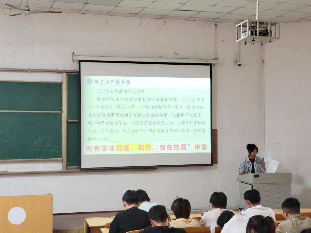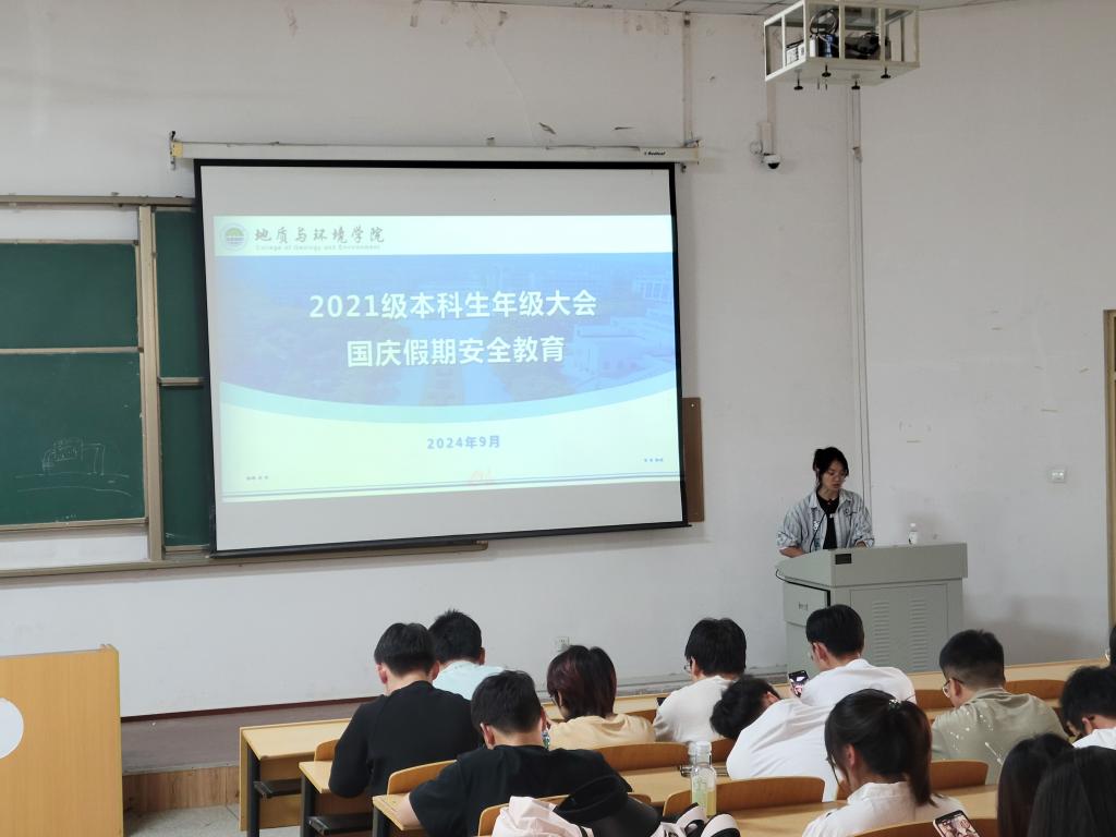 9月27日下午,公司在骊山校园9教101召开2021级本科生国庆假期安全教育年级大会,会议由21级辅导员陈艳丽主持,2021级全体员工参加。