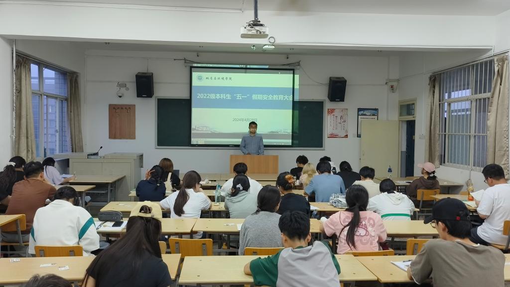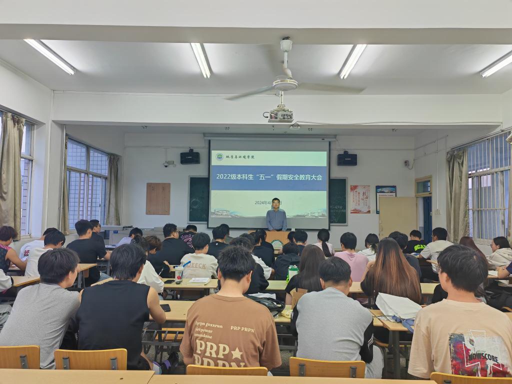 4月28日晚,公司2022级本科生辅导员余小涛深入2022级晚自习教室,召开“五一”假期安全教育会。