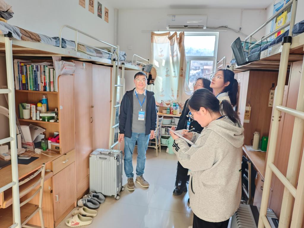 每到一间宿舍,老师们与同学们深入交流,了解学习、生活各方面情况,对宿舍用电安全、卫生内务等进行检查,针对发现的问题进行现场整改。老师们叮嘱同学们关注宿舍安全,不使用违规电器,不私拉电线,提高安全防范意识,共同营造良好的宿舍氛围。